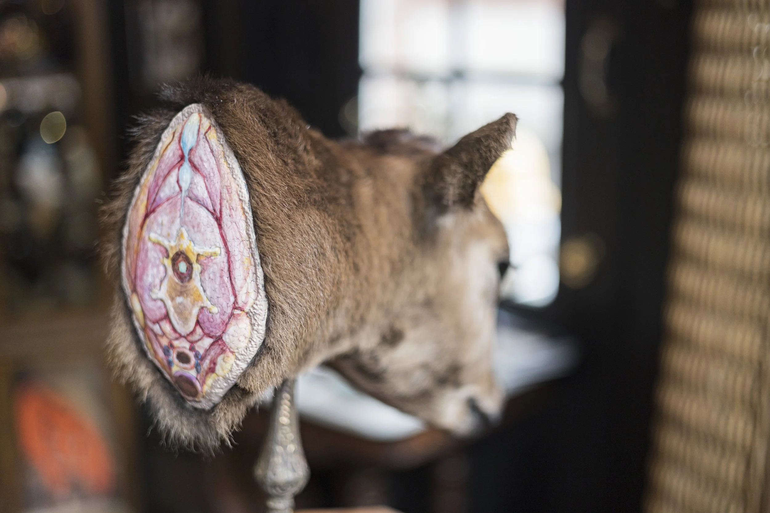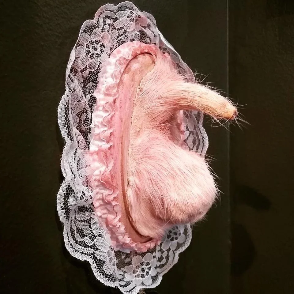 Taxidermy is a corporeal medium. To create each piece, I use chemical agents and modeling media to transform a temporal organic body into a permanent synthetic body. Damaged specimens are my opportunity to reconstruct imaginatively around this concept.