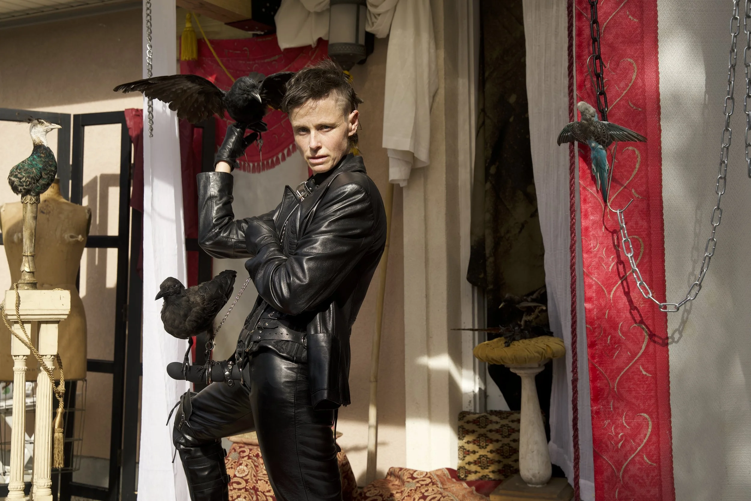 Since the Stone Age, animal skins have been manipulated for human attire and adornment. Leather, fur and feathers are both display and disguise. Animal bodies invite us to mask, project, and play with our human identities, while revealing nothing about themselves.